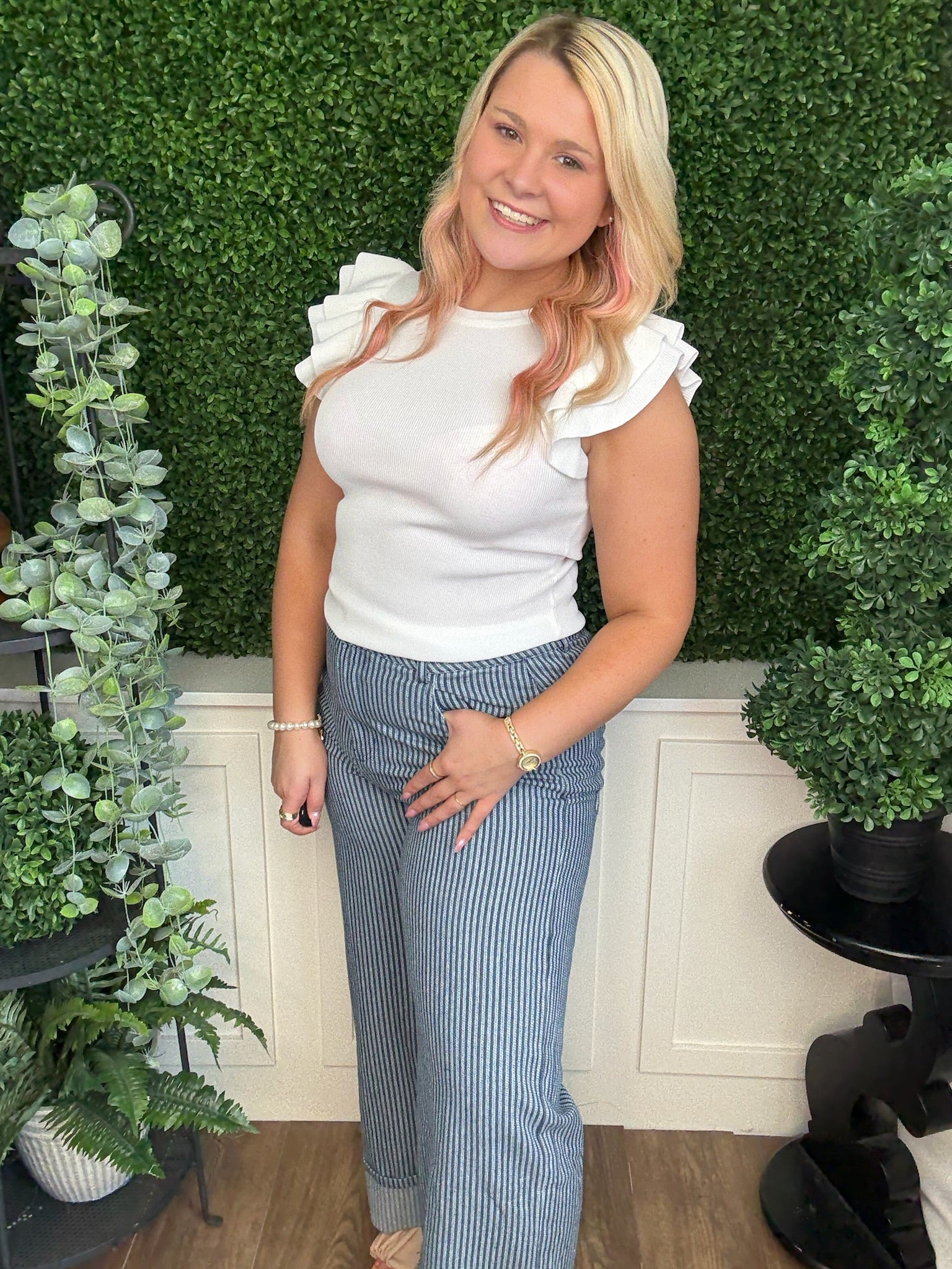 These stripe pattern mid-rise ankle length denim pants offer a playful twist on classic jeans. The flattering mid-rise fit pairs perfectly with the ankle length cut, making them ideal for showing off your favorite shoes. Soft denim fabric ensures comfortable wear all day, while the subtle stripes add a cute, stylish detail to your casual outfits. Perfect for adding charm to your everyday look!