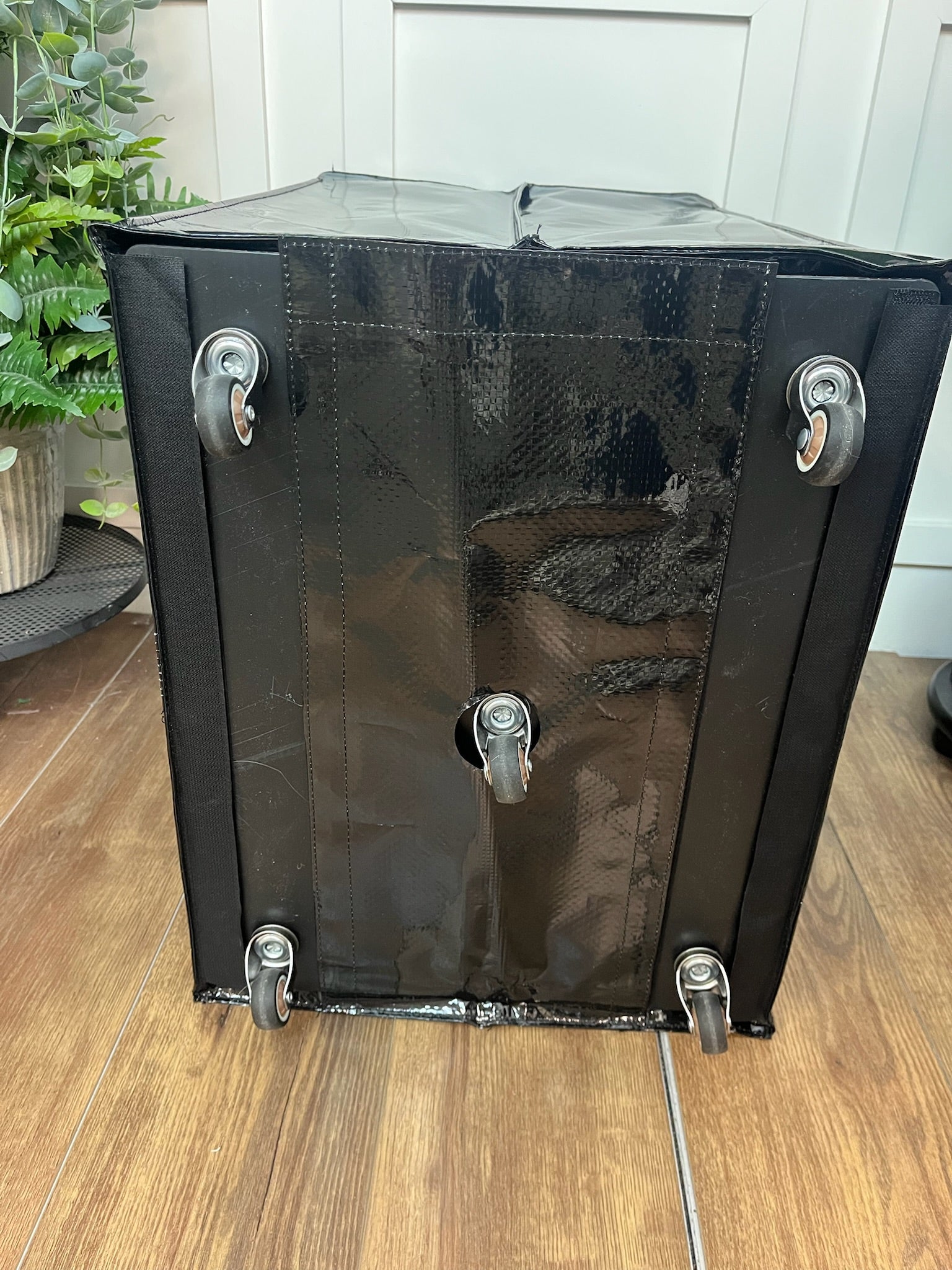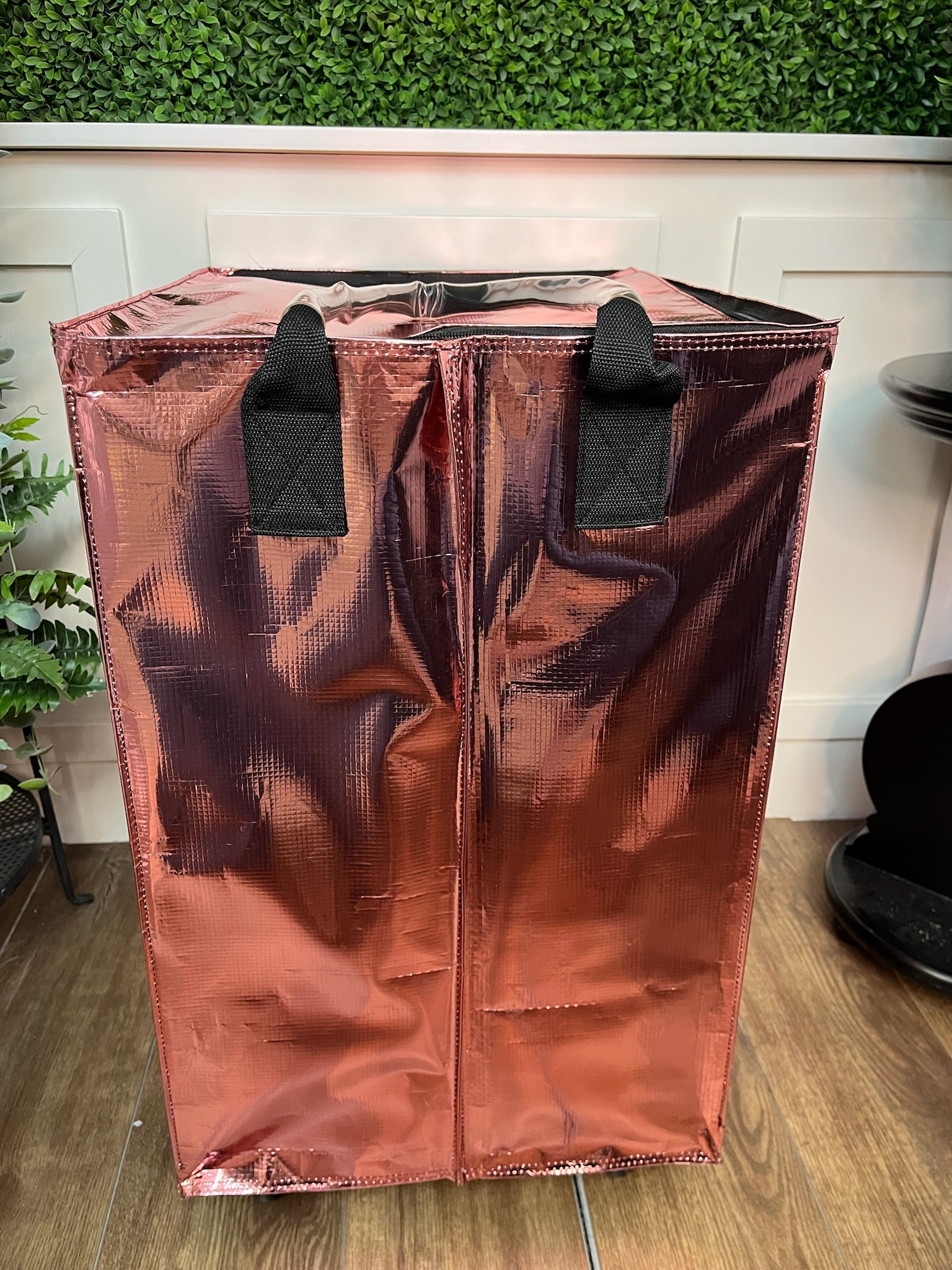 Crafted from durable Polypropylene, this bag measures 16x24x20in and can hold up to 66lbs. It features 4 wheels and 3 handles, making it versatile for use as a handbag, shoulder bag, or shopping cart. Perfect for various situations such as shopping, groceries, picnics, and travel.