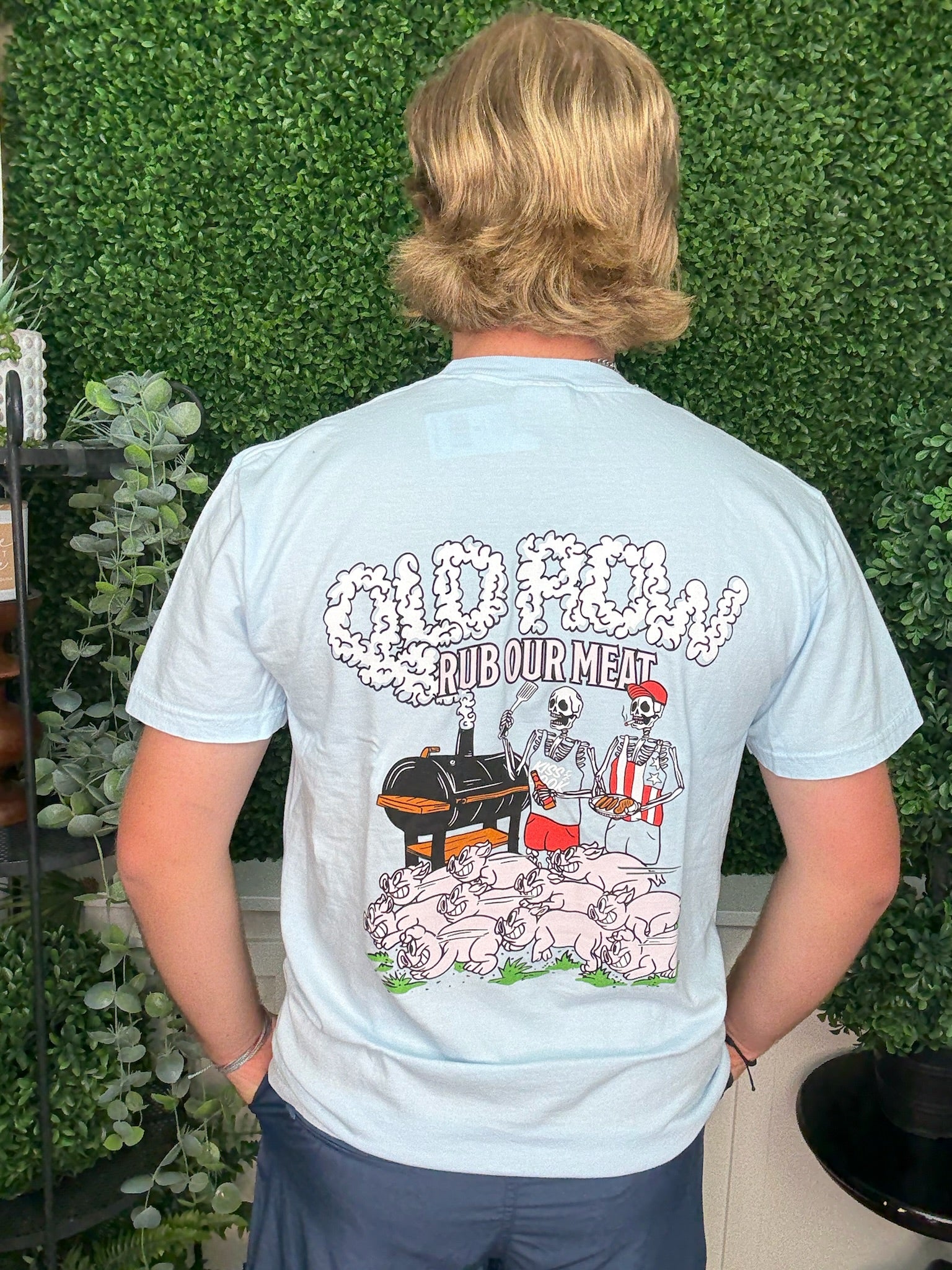 rub our meat 2.0 pocket tee - chambray