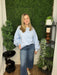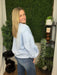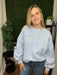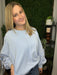 scallop trim w/sleeve bow detail sweatshirt - dusty blue