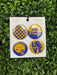 Show your team spirit with this set of four game day football buttons in vibrant purple and yellow. These cute accessories are perfect for adding a fun, festive touch to your gameday outfit or gear, helping you celebrate every play with style.