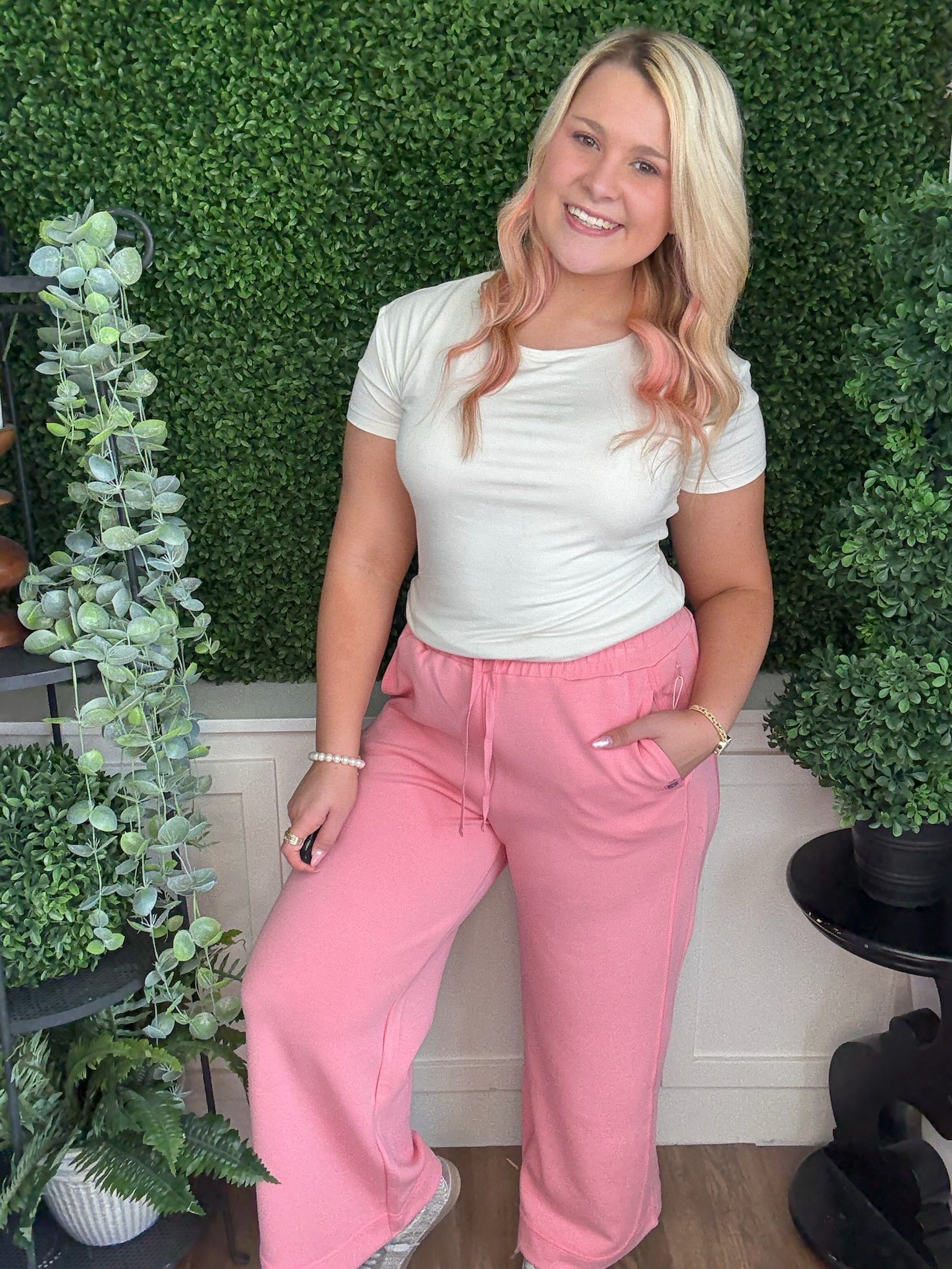The Sloan Pant in petal offers a soft, casual style perfect for everyday wear. Its comfortable fit and gentle color make it easy to pair with your favorite tops for a relaxed yet put-together look.
