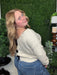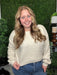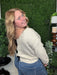 stripe side tie short sleeve knit sweater - oatmeal