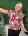 floral print flutter sleeve top - burgundy