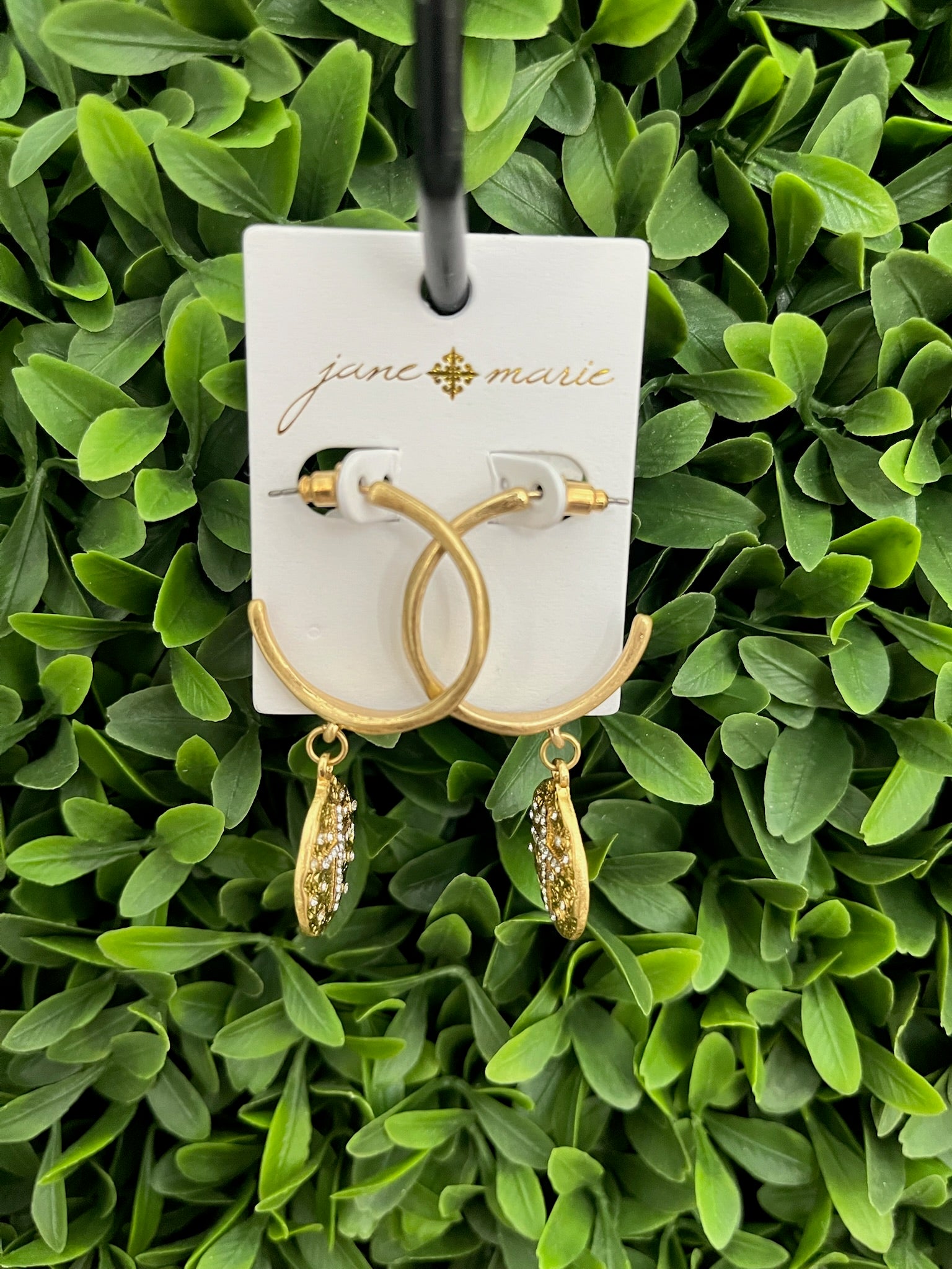 thin gold hoop w/clear crystal cross & crystal accents earrings