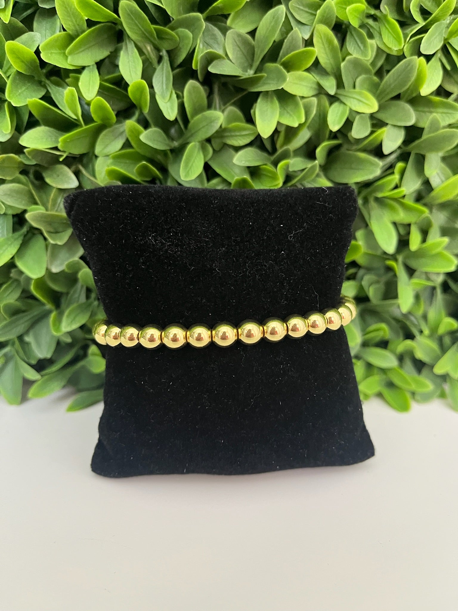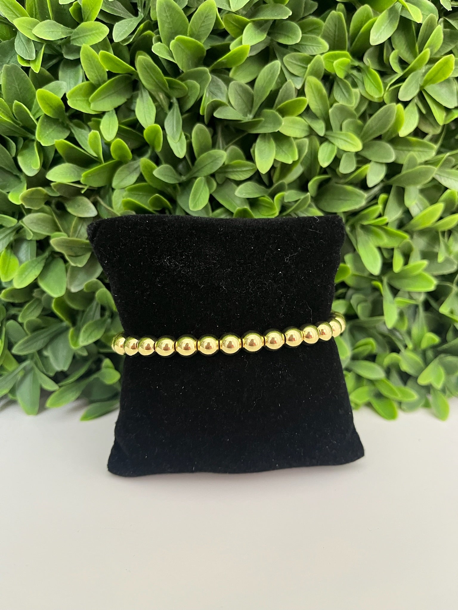 The Water Resistant Non-Tarnish Ball Bead Stacker Bracelet in gold combines durability with elegant design. Crafted to resist water and prevent tarnishing, this bracelet maintains its radiant shine while adding a sophisticated touch to any look. Perfect for stacking or wearing alone as a timeless accessory.